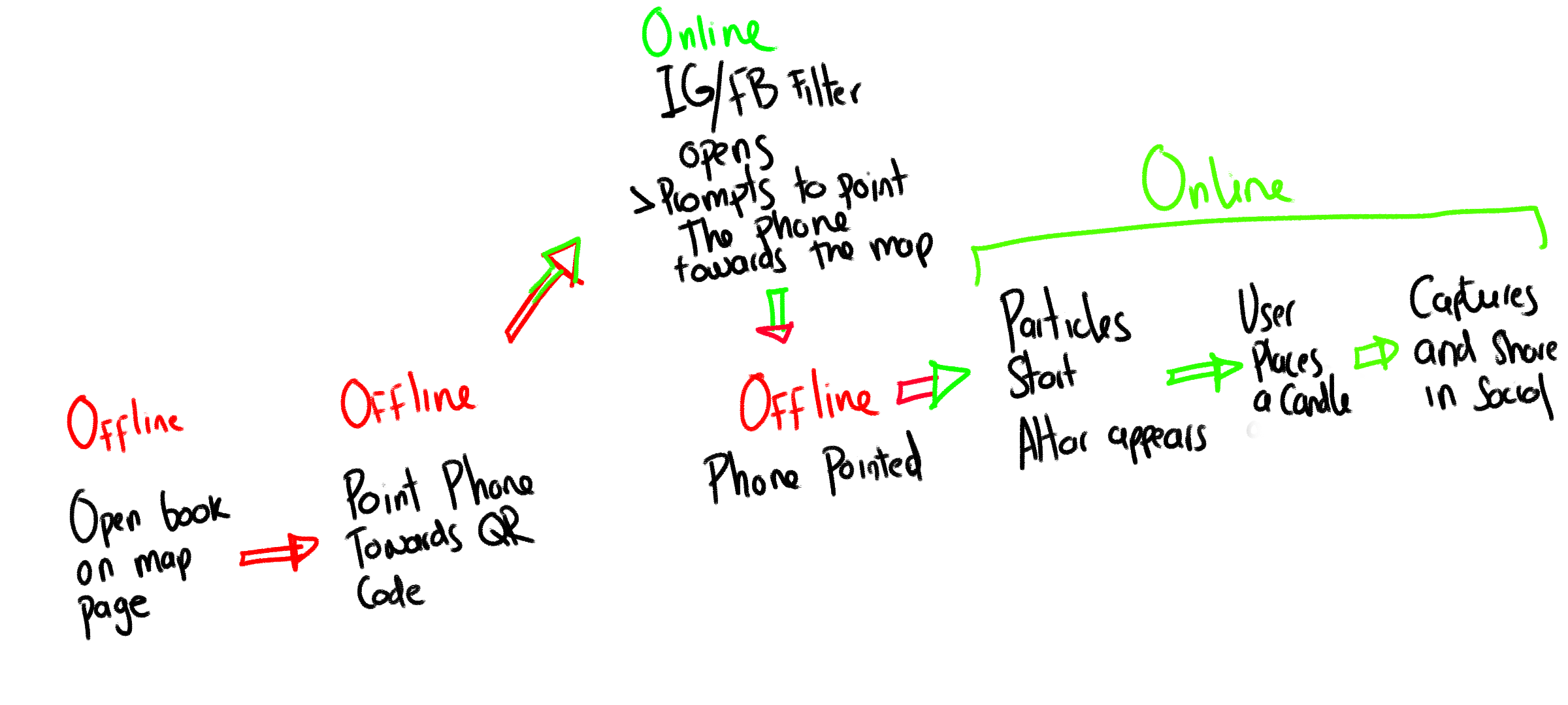 One of our main goals when developing the AR component of the Interactive Art Book, was to make sure that in every interaction with these AR Altars due respect was given to the victims and their families. Unlike a VR Experience in which the designer has total control over the input the user is receiving in any given moment, in AR the user’s context interacts with the digital environment, leaving the designer very little control over the final experience. To work around that limitation we decided to use Target or Marker Tracking as our experience trigger. This solution served multiple purposes