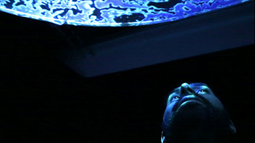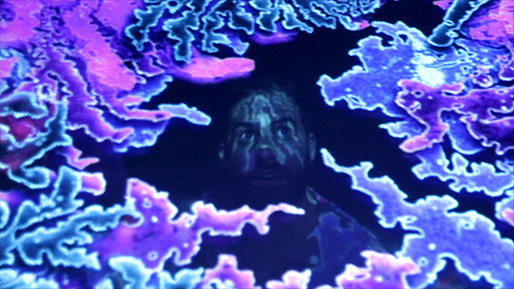 In the installation itself, the animation is triggered in a layered way by hand gestures. How much impact does a participant has in the development of the piece depends on which stage of the "life" of the system they are acting over. During the initial minutes of the piece, touch is critical to make the organism grow and develop, but as the piece moves along the actions of the participants are less and less influential on the development of the animation, arriving finally to the inevitable death of the system. During this process, the participants are standing between two projections of the system, inhabiting the space they create with their touch, magnifying the idea that caring for the piece has a direct effect on the environment they stand on.