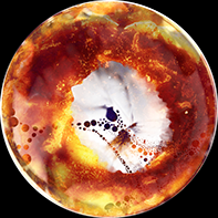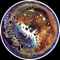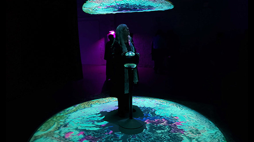 At the base of the image making process was the idea of a “living organism”. It was important to find a visual language that was both abstract and organic, and that could evoke easily that the installation was a growing and developing being. To achieve such effect I used a procedural approach using analog under-the-camera animation with inks, oils, alcohols, etc. combined with digital image editing and re-timing. This process resulted in an animation that felt familiar and strange at the same time, evoking the characteristics of a living system, without pointing to any specific living organism in particular.