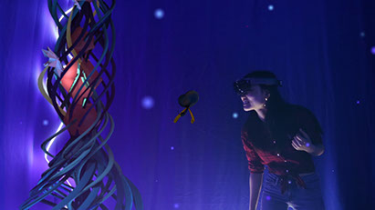 In addition to low polygon meshes and joint based animation, there were specific spatial requirements for Hololens to function properly, like a minimum amount of light to map the space at all times, and a static starting point for the experience.