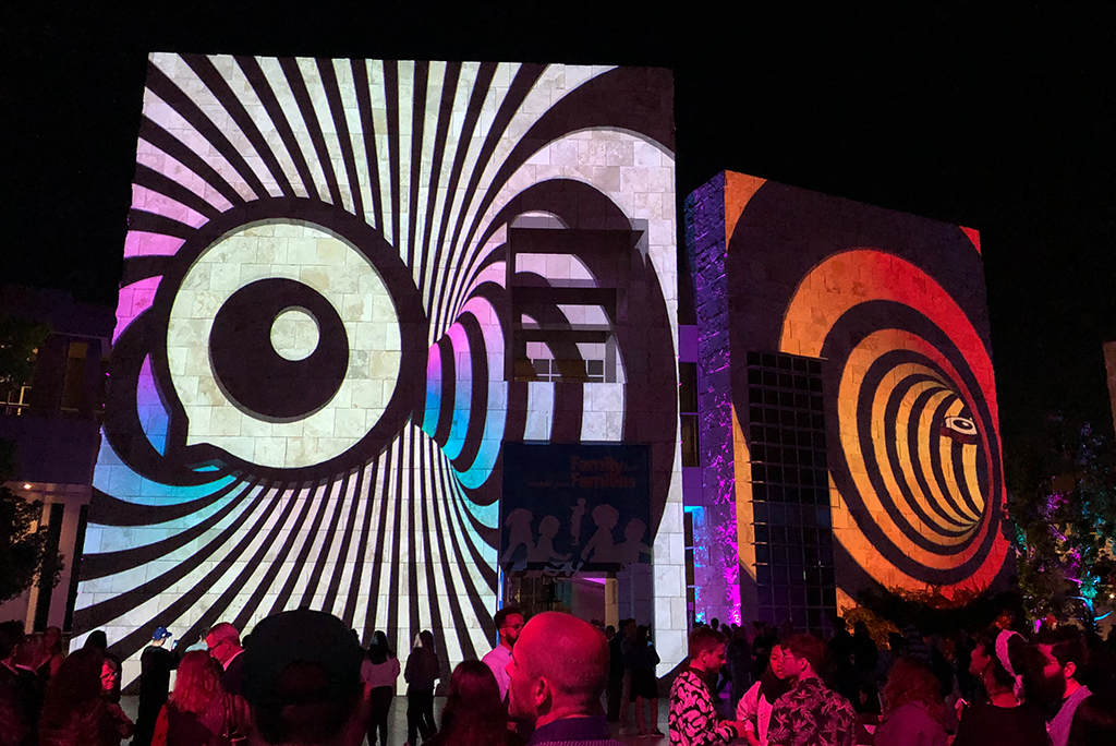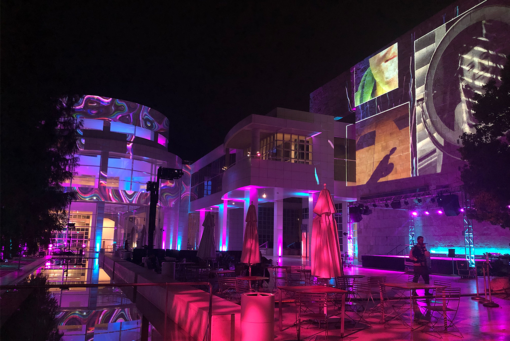 Getty UnShuttered is an annual Immersive Projection Exhibit Directed and Curated By Mike Patterson and Candace Reckinger with over 3000 attendees. We use projection mapping in more than 10 buildings and a rock fountain at The Getty Unshuttered to bring the Museum to live in a night full of music and color.